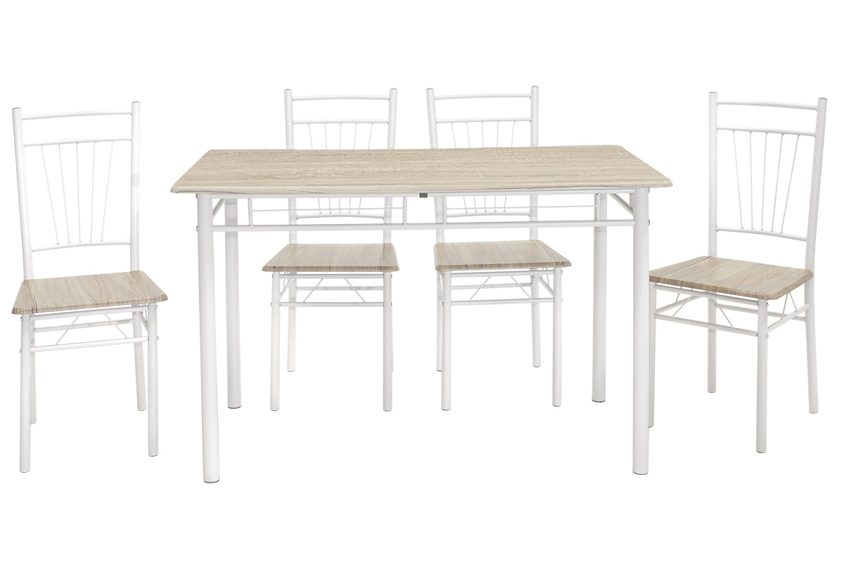 Tραπεζαρία Roza σετ 5τμχ χρώμα sonoma – πόδια λευκό gloss 120x70x75εκ