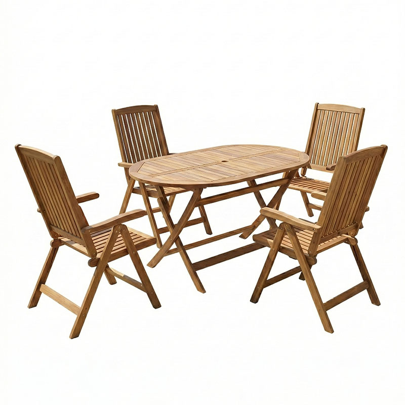 Τραπεζαρία Zerco-Falov pakoworld σετ 5τεμ φυσικό μασίφ ξύλο ακακίας 130x80x72εκ