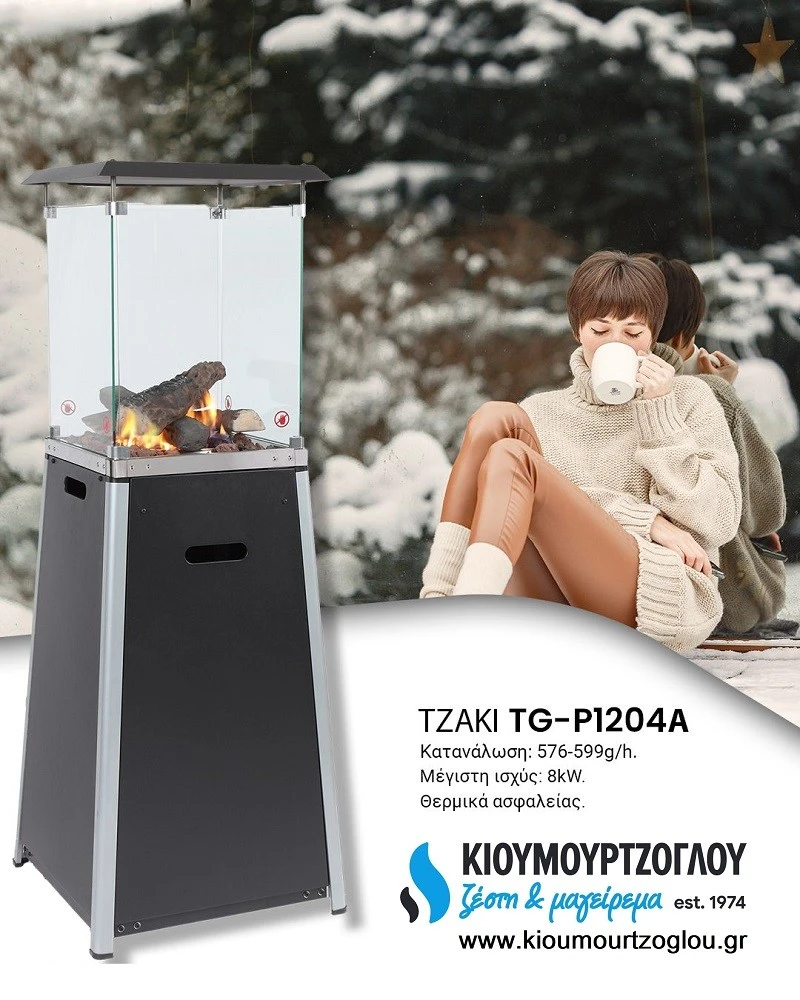 Φορητό Τζάκι TGP1204Α Υγραερίου Εξωτερικού Χώρου , προσφέρει ιδανική θέρμανση καθώς και μοναδική ατμόσφαιρα για κάθε υπαίθριο χώρο.