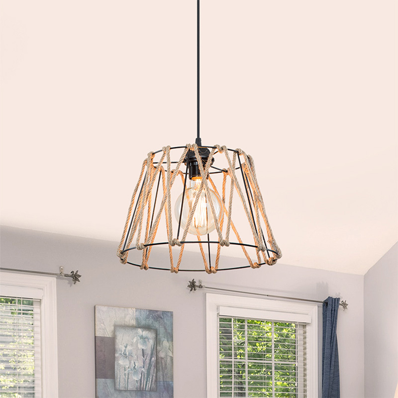 Φωτιστικό οροφής μονόφωτο PWL-1160 pakoworld E27 μαύρο-σχοινί 31×23.5εκ
