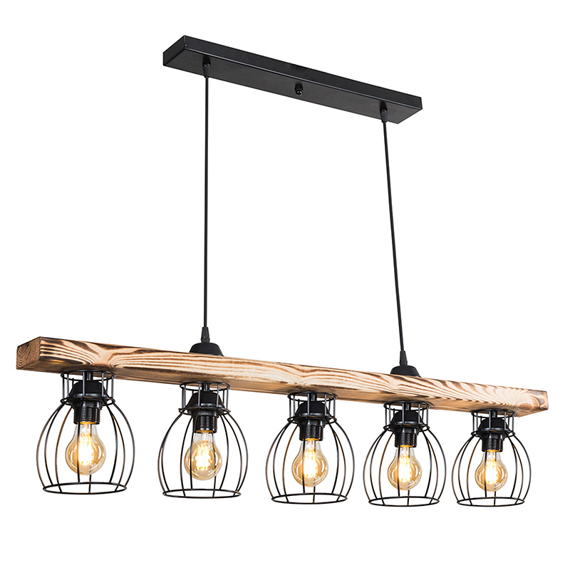 Φωτιστικό οροφής πεντάφωτο Jazzy pakoworld Ε27 καρυδί-μαύρο 100×8.5×27εκ