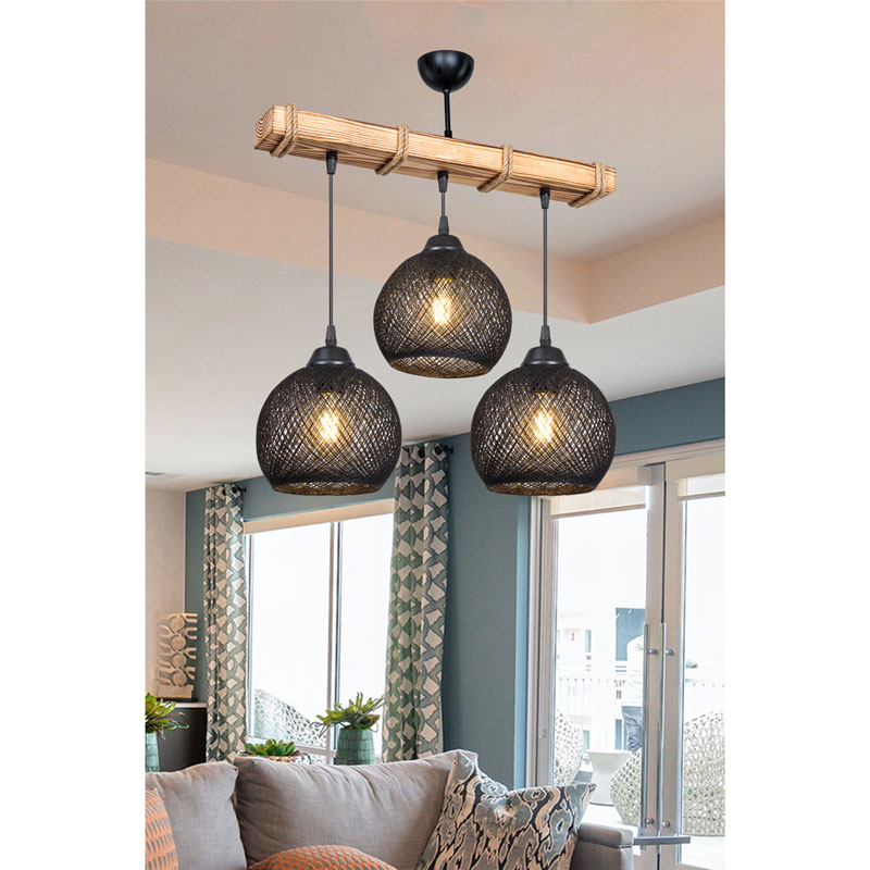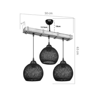 Φωτιστικό οροφής τρίφωτο Fiona pakoworld Ε27 μαύρο-φυσικό 50x20x63εκ