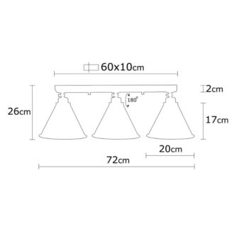 Φωτιστικό οροφής Arden Megapap E27 μεταλλικό τρίφωτο χρώμα μαύρο 72x20x26εκ.