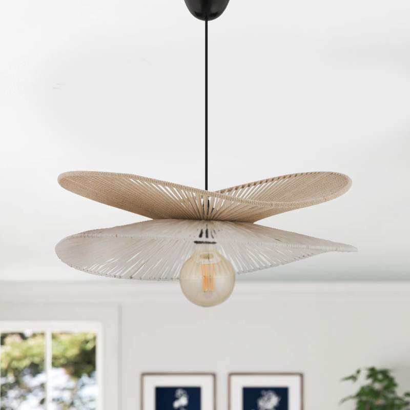 Φωτιστικό οροφής Dafodil Megapap E27 γιούτα μονόφωτο χρώμα μπεζ – λευκό Ø48×55εκ.