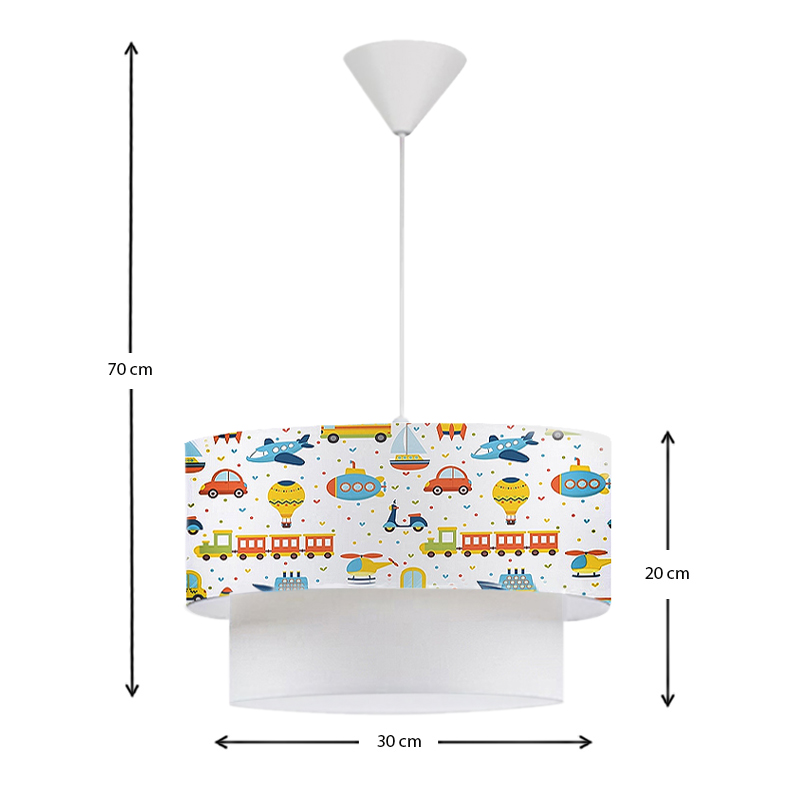 Φωτιστικό οροφής Goofy Megapap υφασμάτινο μονόφωτο με χαριτωμένα οχήματα 30x20x70εκ.