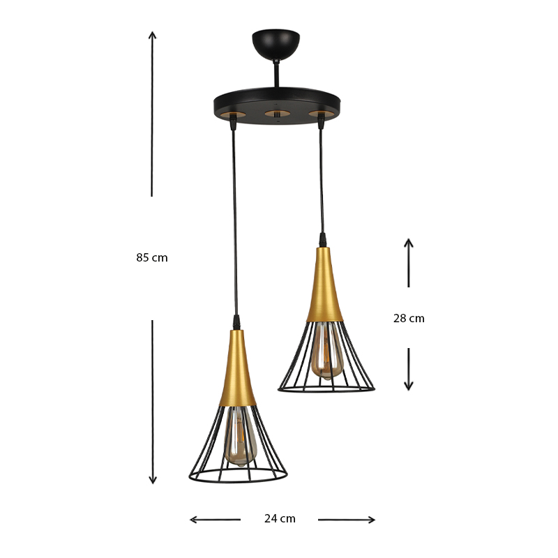 Φωτιστικό οροφής Havana Megapap E27 μεταλλικό δίφωτο χρώμα μαύρο – χρυσό 24x24x85εκ.