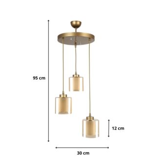 Φωτιστικό οροφής Kenedy Megapap E27 μεταλλικό – γυάλινο τρίφωτο χρώμα χρυσό Ø30×95εκ.