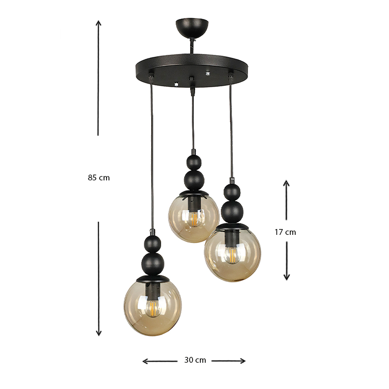 Φωτιστικό οροφής Latona Megapap E27 μεταλλικό τρίφωτο χρώμα μαύρο 30x30x85εκ.