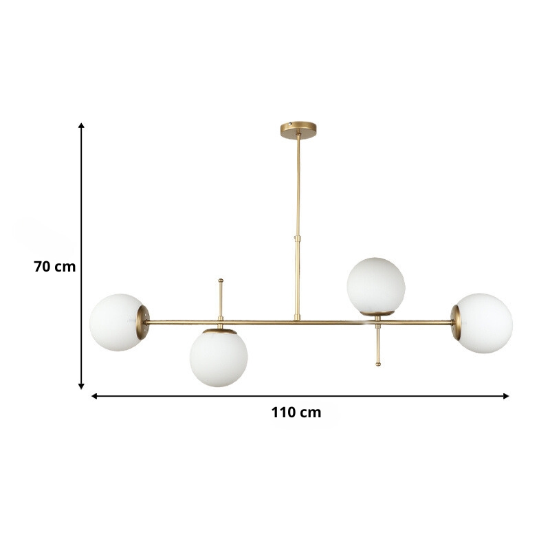 Φωτιστικό οροφής Lura Megapap Ε27 μεταλλικό – γυάλινο τετράφωτο χρώμα χρυσό 110×70εκ.