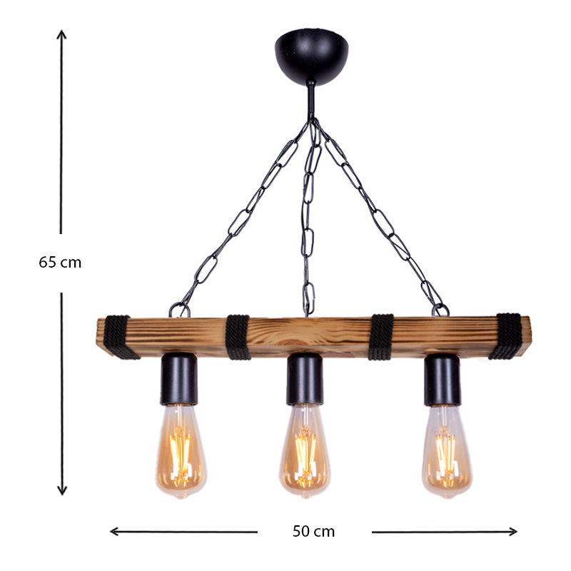 Φωτιστικό οροφής Mako Megapap E27 ξύλινο τρίφωτο χρώμα καρυδί/μαύρο 50x10x65εκ.