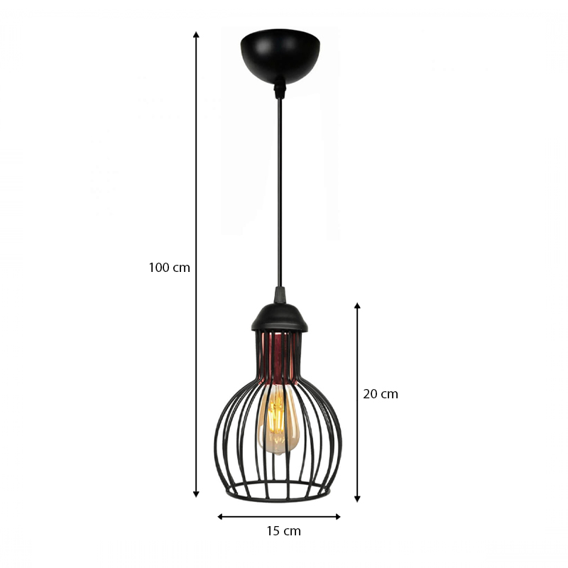 Φωτιστικό οροφής Manolia Megapap E27 μεταλλικό μονόφωτο χρώμα μαύρο Φ15×100εκ.