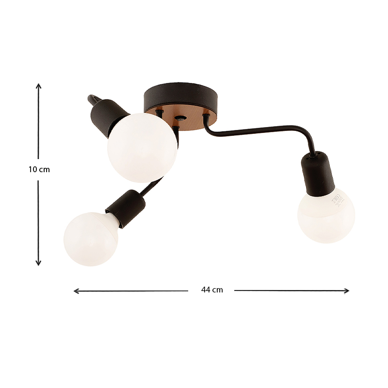 Φωτιστικό οροφής Salvi Megapap E27 μεταλλικό τρίφωτο χρώμα μαύρο 44x44x10εκ.