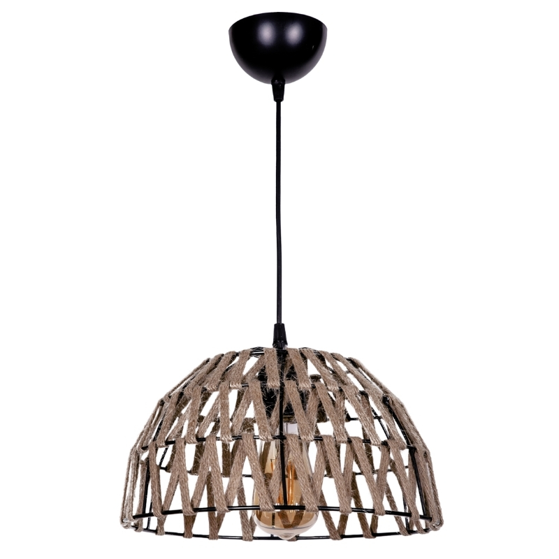 Φωτιστικό οροφής Simoza Megapap E27 μεταλλικό – σχοινί μονόφωτο χρώμα φυσικό Ø30×70εκ.