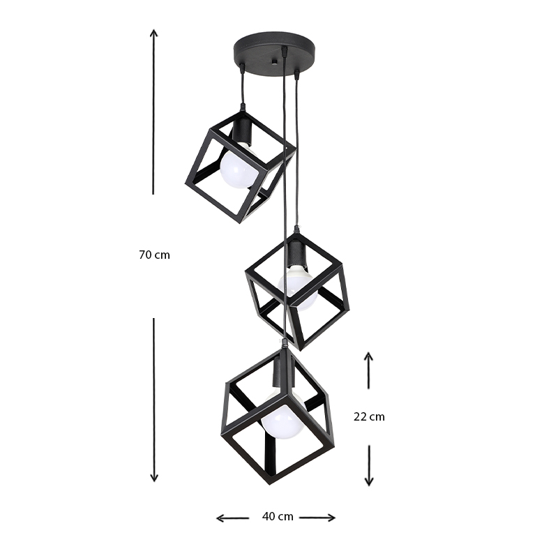 Φωτιστικό οροφής Thora Megapap E27 μεταλλικό τρίφωτο χρώμα μαύρο 22x22x70εκ.
