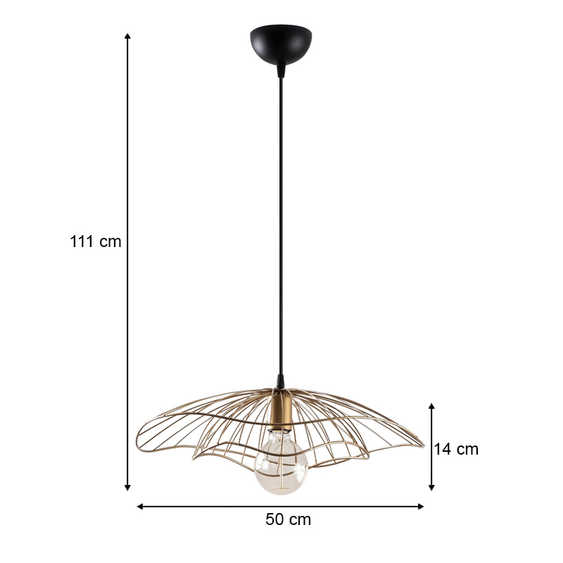 Φωτιστικό οροφής Yildo Megapap E27 μεταλλικό μονόφωτο χρώμα χρυσό vintage Φ50×111εκ.