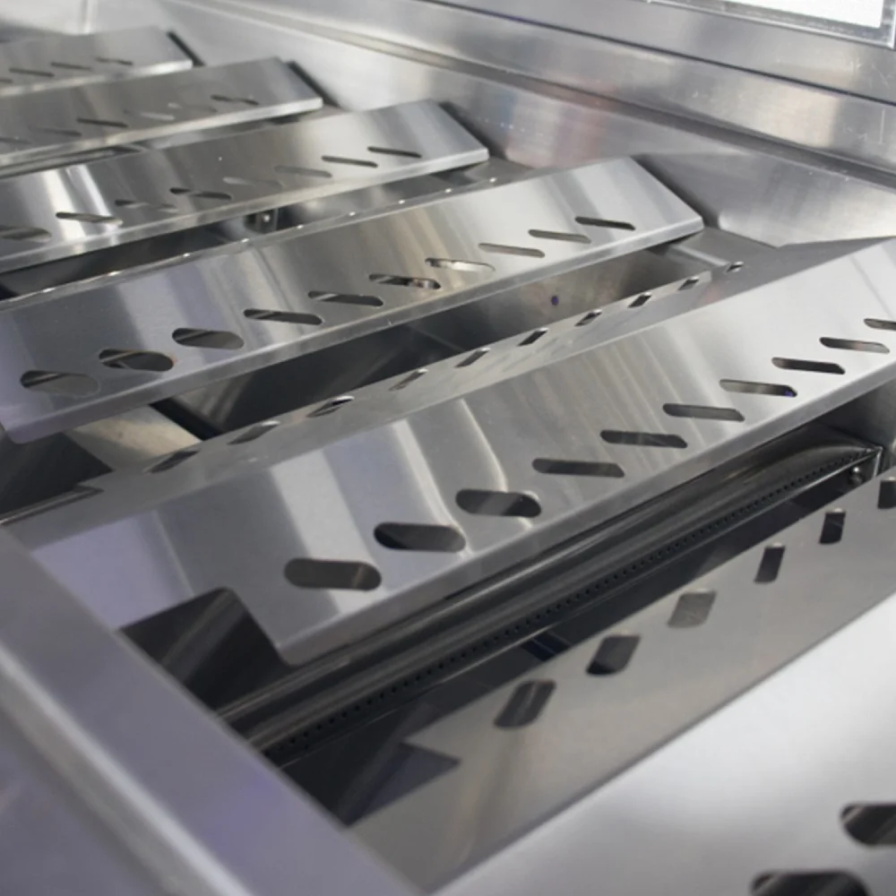 Καθώς ενεργοποιείς τους 6 INOX καυστήρες των 3,7kW, φτάνεις γρήγορα σε θερμοκρασίες υψηλής απόδοσης, ενώ με τον κεραμικό infrared καυστήρα backburner 4,5kW δημιουργείς τέλειες σούβλες ή ζουμερά κρεατικά.