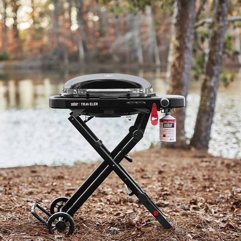 Ψησταριά υγραερίου Φορητή Traveler Compact – Weber, με έναν καυστήρα, μαντεμένιες σχάρες και ανθεκτική τροχήλατη βάση που αναδιπλώνει εργονομικά, ώστε να μπορείτε να την παίρνετε παντού μαζί σας.
