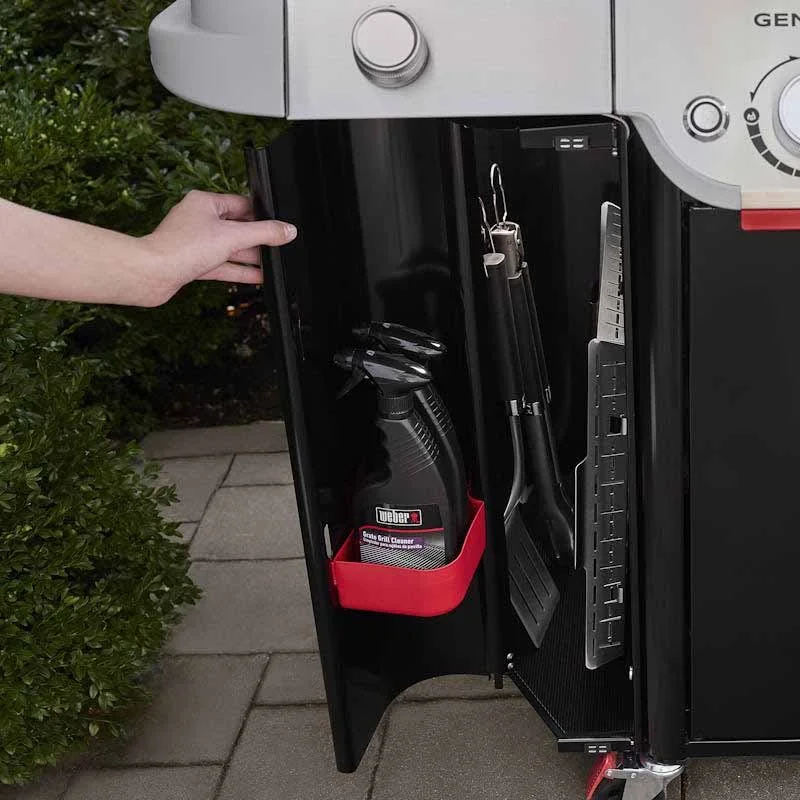 Ωστόσο μπορείς επιπλέον να οργανώσεις τα σκεύη, τα καρυκεύματα και τα προετοιμασμένα φαγητά σου στα μεγάλα, προσαρμόσιμα τραπεζάκια που συνδυάζονται με αξεσουάρ Weber Works (πωλούνται χωριστά), και κάνε το σερβίρισμα παιχνιδάκι.