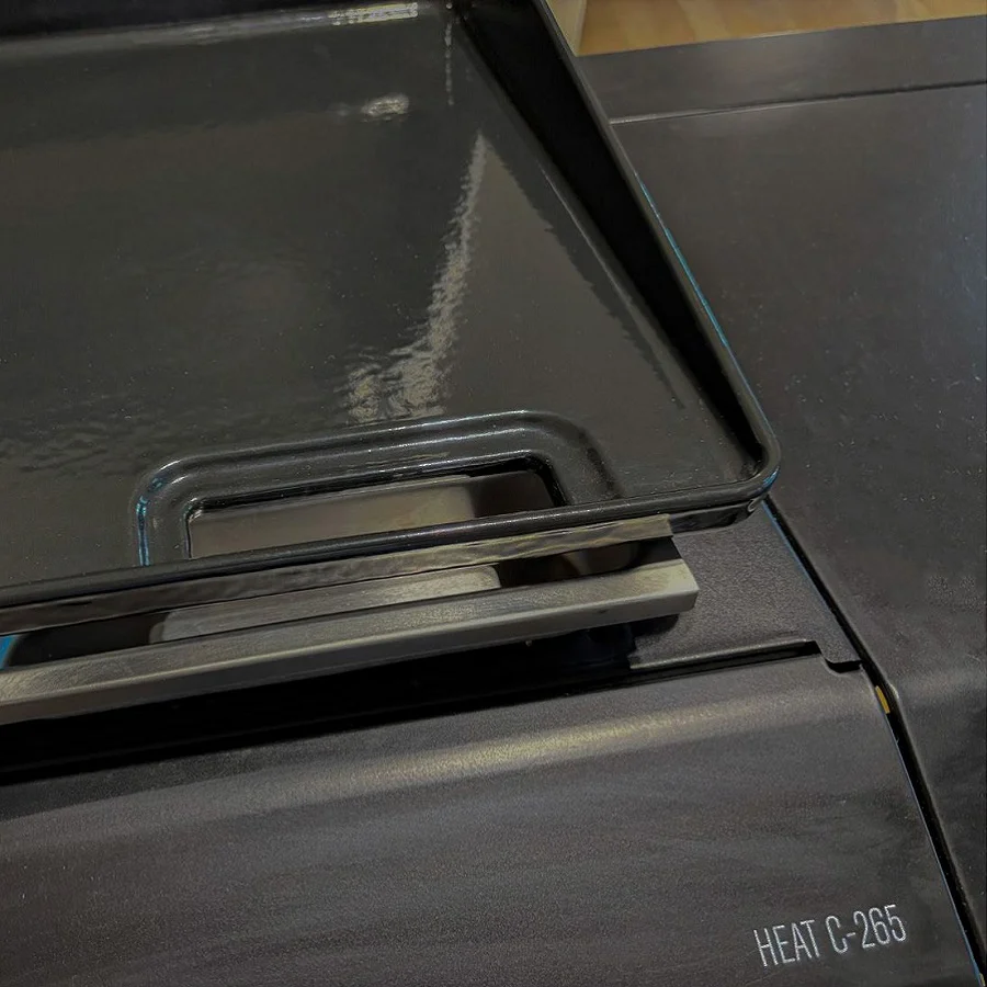 Η XL μαντεμένια πλάκα, που περιλαμβάνει ο βασικός εξοπλισμός, μετατρέπει την HEAT C-265 σε μια πραγματική plancha grill.