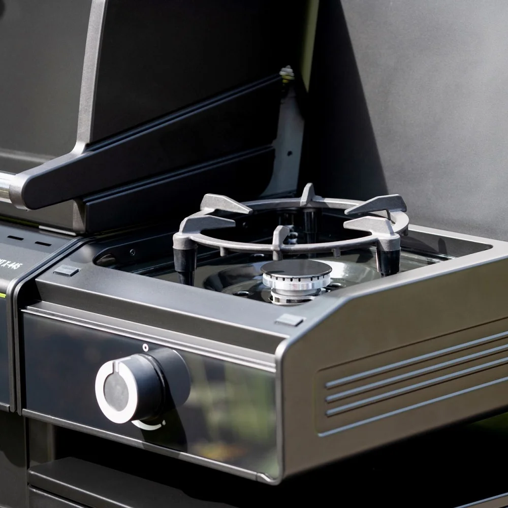 Επίσης ο πίσω καυστήρας από ανοξείδωτο χάλυβα και η πρακτική ζώνη μαγειρέματος ολοκληρώνουν τον εξοπλισμό αυτής της προηγμένης ψησταριάς.