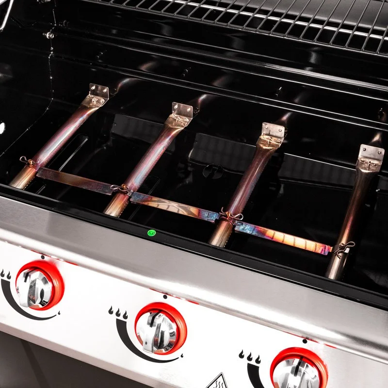 Με τέσσερις ΙΝΟΧ καυστήρες που παρέχουν άφθονη θερμοκρασία στις σχάρες και εξελιγμένο σύστημα ανάφλεξης που εγγυάται ακόμη πιο αξιόπιστο και γρήγορο άναμμα του καυστήρα θα μείνετε απόλυτα ευχαριστημένοι.