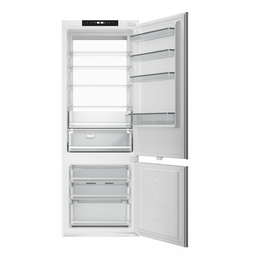 69εκ.πλήρως εντοιχιζόμενος ψυγειοκαταψύκτης Sliding doors, Total no frost σύστημα ψύξης, κινητήρας inverter, ηλεκτρονικός χειρισμός με πλήκτρα αφής, Led φωτισμός ολόκληρης της πλάτης συντύρισης, δυνατότητα αλλαγής φοράς ανοίγματος πορτών.