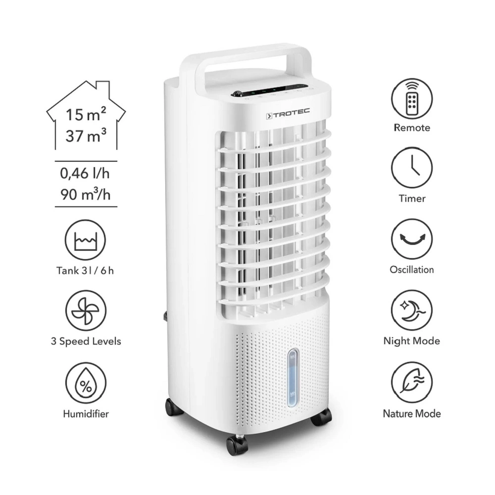 Aircooler TROTEC Germany – PAE 11 & Υγραντήρας, καθαριστής αέρα, η λύση 3 σε 1 για όλο το χρόνο: Ψύκτης αέρα, ανεμιστήρας και υγραντήρας – όλα σε μία συσκευή