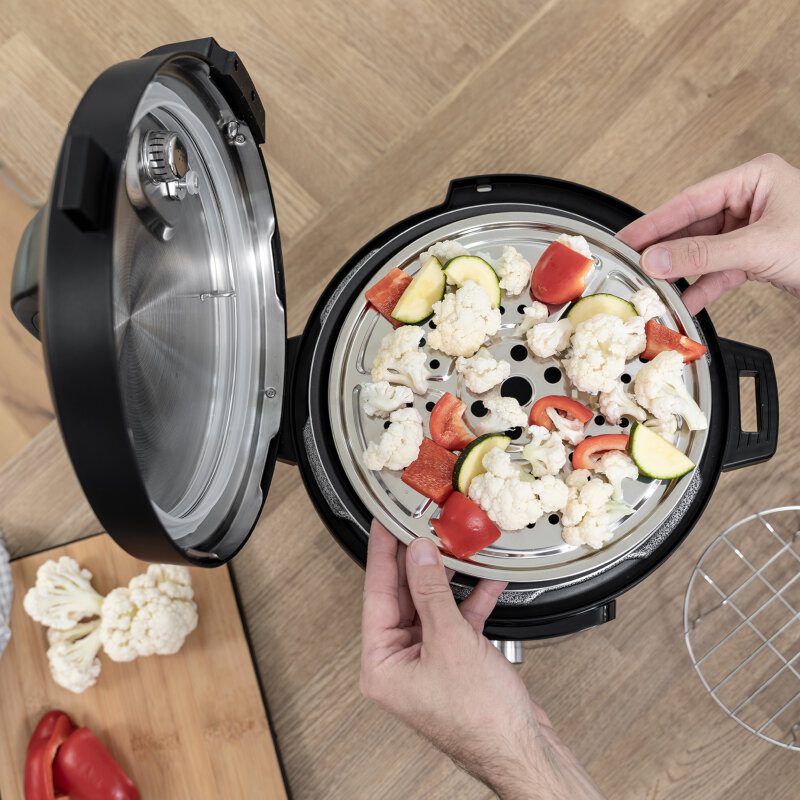 Αρχικά το δοχείο μαγειρέματος διαθέτει αντικολλητική επίστρωση. Επίσης περιλαμβάνει 12 προγράμματα για όσπρια, κρέας, κέικ, ζυμαρικά, αλλά και διαφορετικές μεθόδους μαγειρέματος ανάλογα τις προτιμήσεις, όπως στον ατμό.