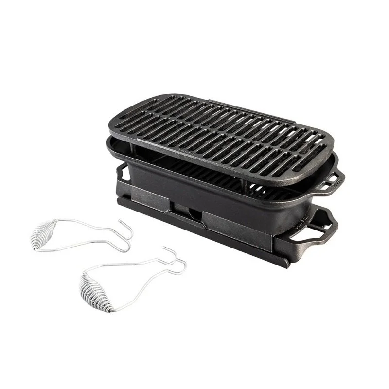 Lodge Sportsman’s Grill Combo – LSPROG, περιλαμβάνει την ομώνυμη μαντεμένια ψησταριά τύπου hibachi (ιαπωνικό σκεύος) σε συνδυασμό με το δοχείο εκκίνησης για πυρακτωμένα κάρβουνα σε μόλις 10 λεπτά!