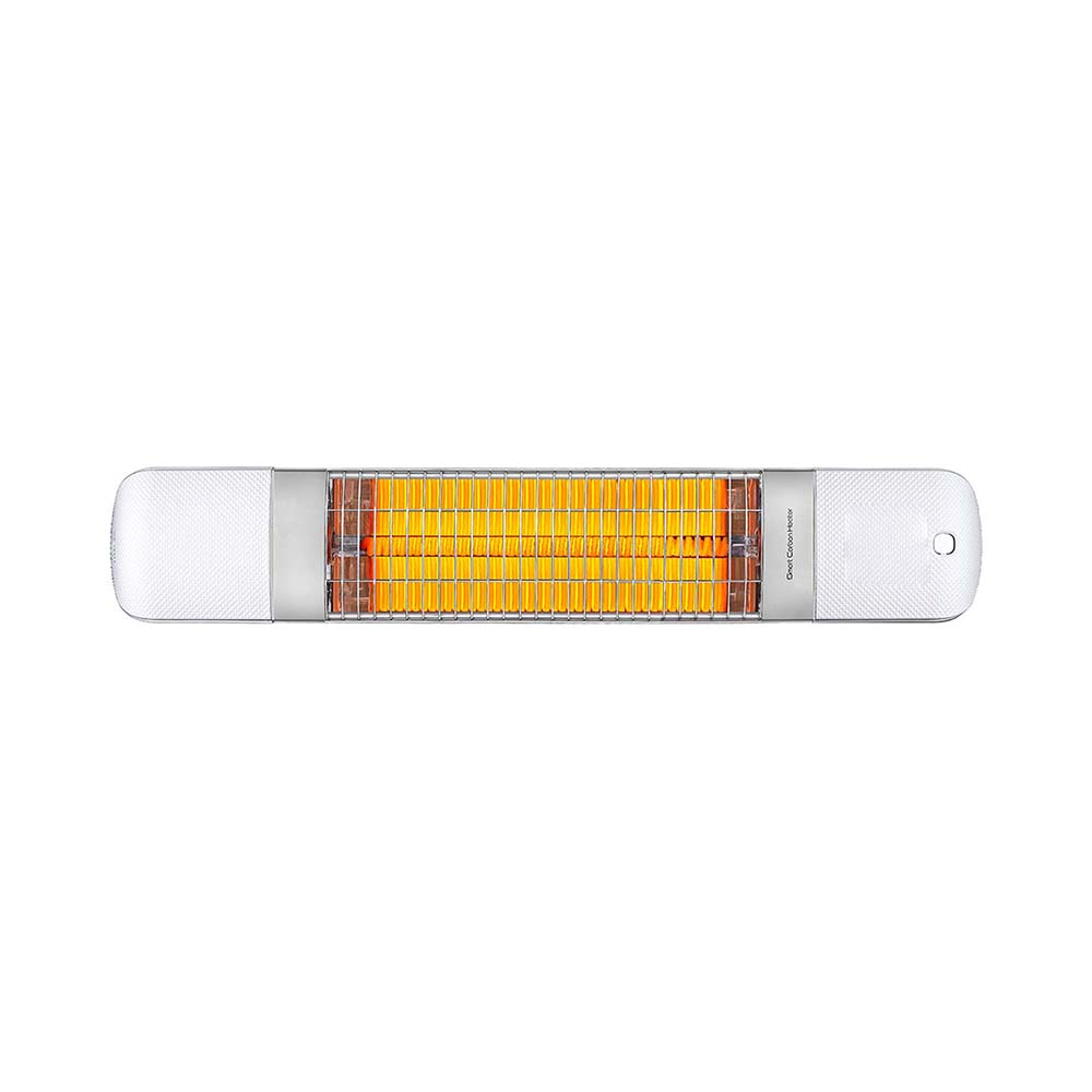 Επιτοίχιο θερμαντικό ηλεκτρικό με ισχύ θέρμανσης 1200W σε λευκό χρώμα, κατάλληλο για χρήση σε εσωτερικούς όσο και σε εξωτερικούς χώρους.