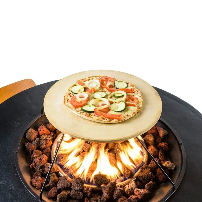Η pizza stone της Ολλανδικής εταιρείας Happy Cocooning είναι κεραμική, τοποθετείτε στο κέντρο της μαντεμένιας πλάκα του Grill κιτ και μπορείτε να ψήσετε μέχρι 35 εκατοστά πίτσα, σαν να ψήνατε σε παραδοσιακό φούρνο.
