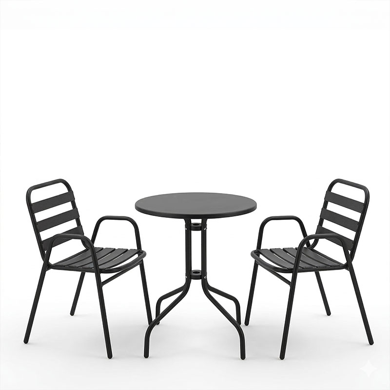 Tραπεζαρία Sussie-Vergo Ι pakoworld σετ 3τεμ μαύρο μέταλλο-αλουμίνιο Φ60×70εκ