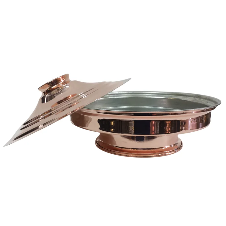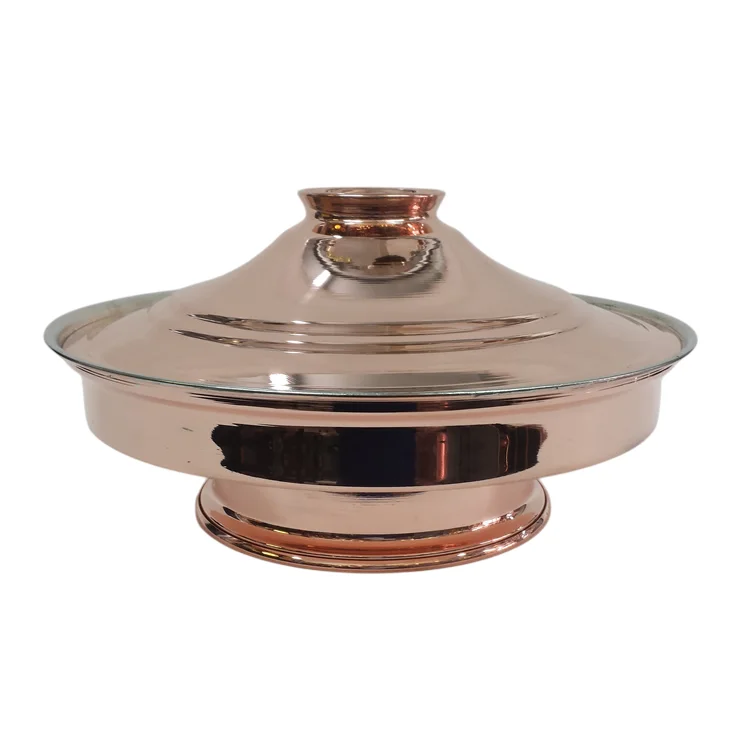 Tanzin με καπάκι και γάνωμα Φ35cm είναι η παραδοσιακή, χάλκινη πιατέλα με πόδι και καπάκι.